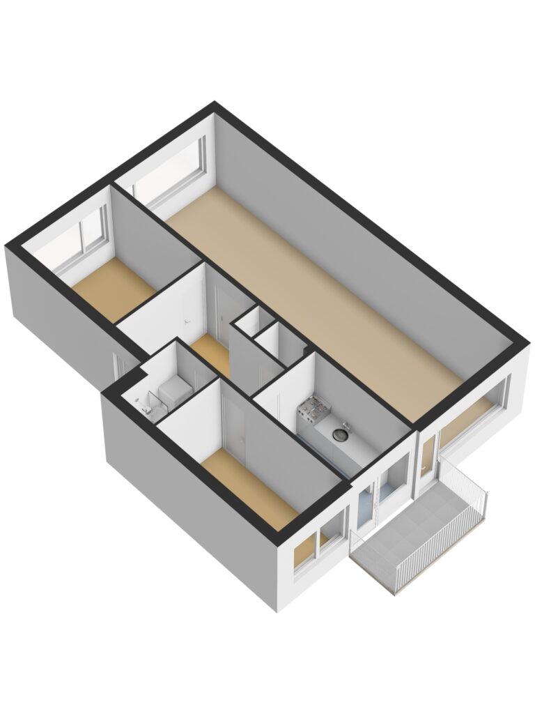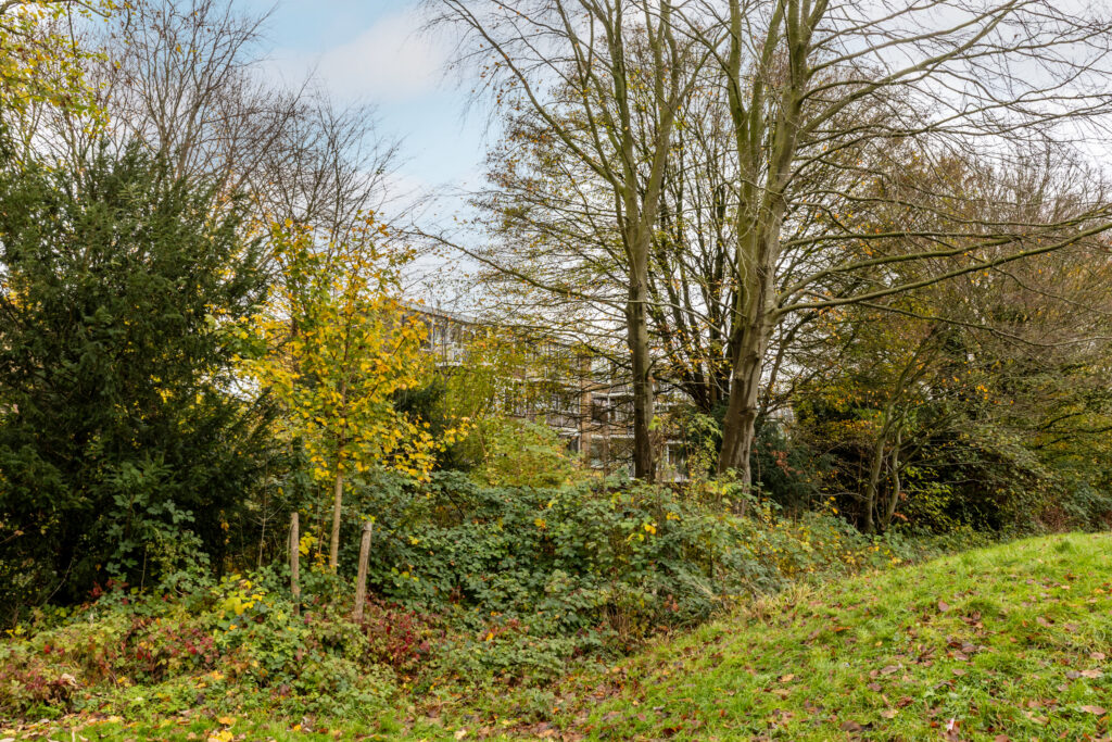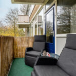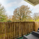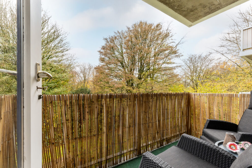 Het balkon is gelegen op het zonnige zuidwesten en kijkt fraai uit op de gezamenlijke tuin en de groenstrook aan de achterzijde.