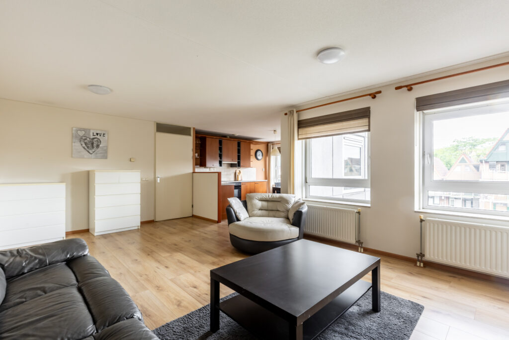 De woonkamer is ruim en heeft een fijne lichtinval.