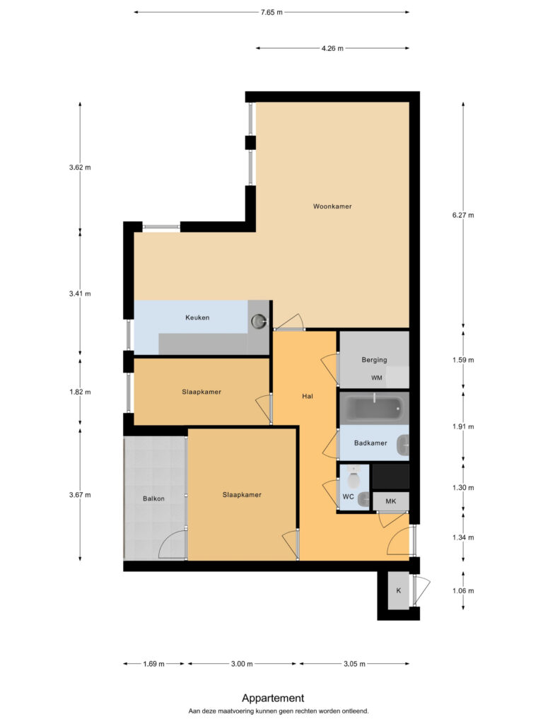 Het appartement beschikt over zowel een bergkast op de gang als een afsluitbare berging in de onderbouw op -2.