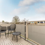 Het riante balkon is gelegen op het zuidwesten, waardoor je de hele dag lekker van het zonnetje kunt genieten.