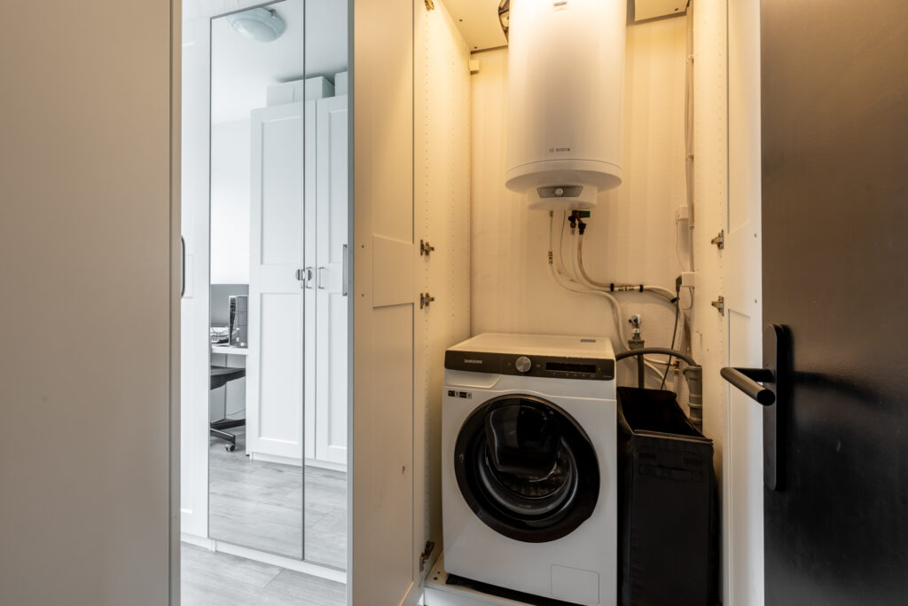 Slaapkamer 3 is ook van prima formaat en is gelegen aan de achterzijde. Daarnaast vind je hier in de opstelplek voor zowel wasmachine als boiler.