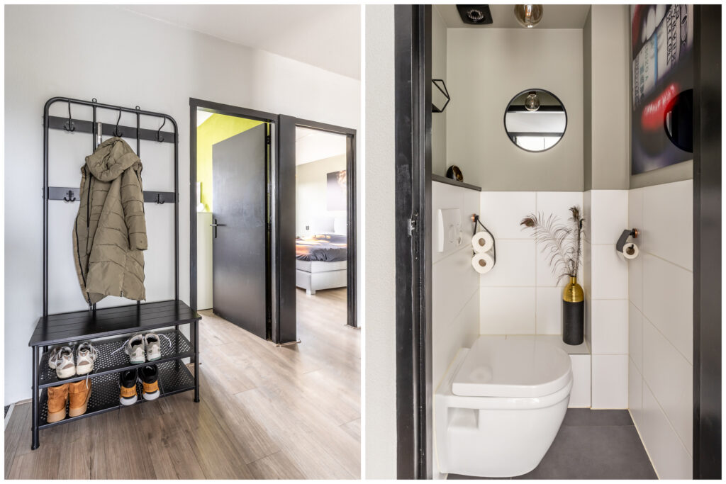 Het separate en moderne toilet is gesitueerd in de hal, alsmede een vaste kast.