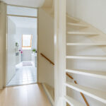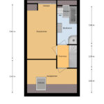 Je betreedt de woning via de riante hal met garderobe, meterkast, toiletruimte, trapopgang naar de verdieping, trapkast en toegang tot de woonkamer.