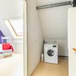 De overloop heeft een 2e aansluiting voor de wasmachine en -droger, mechanische ventilatie en cv-ketel.