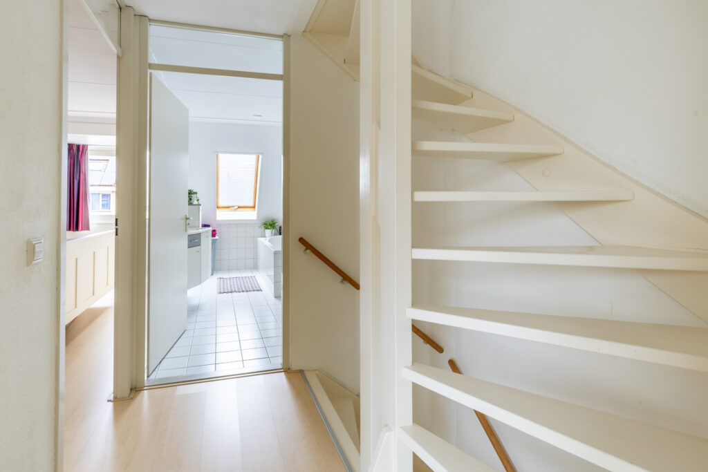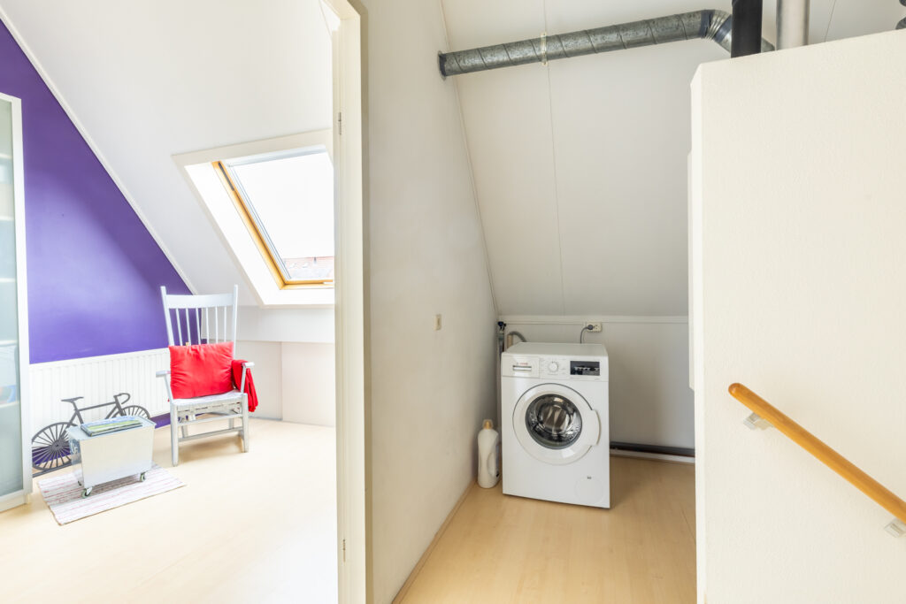 De overloop heeft een 2e aansluiting voor de wasmachine en -droger, mechanische ventilatie en cv-ketel.