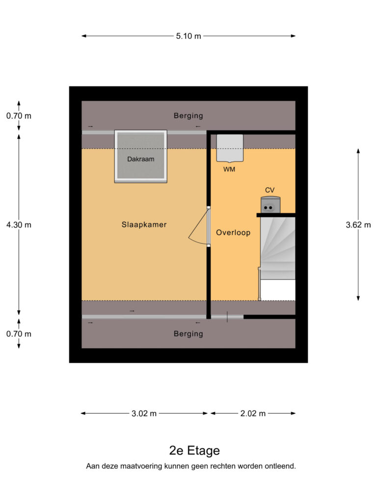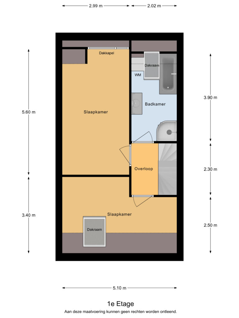 De hoofdslaapkamer is gelegen aan de achterzijde en is bijzonder ruim. Slaapkamer 2 is aan de voorzijde gelegen, over de gehele breedte van de woning, en is voorzien van een dakraam en dakkapel.